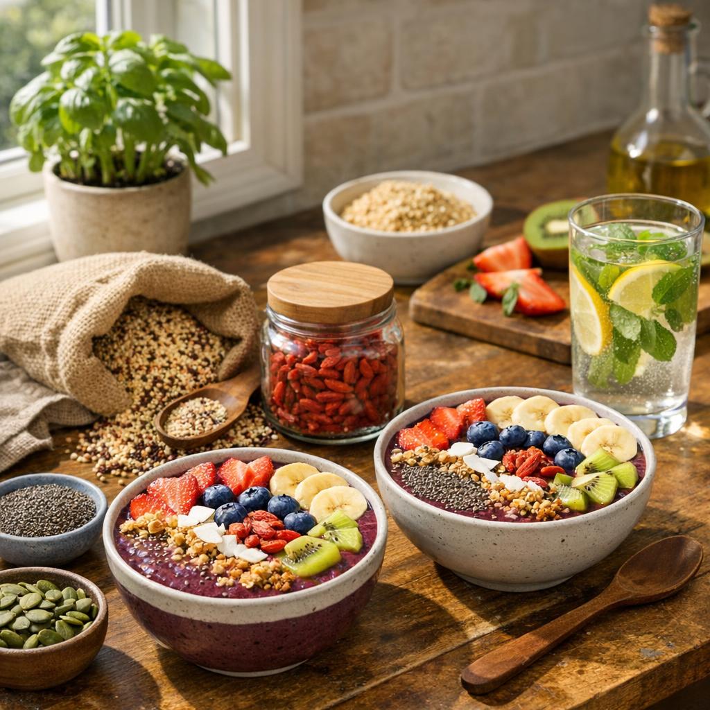 • Kombiniere Superfoods mit frischem, regionalem Obst und Gemüse für optimale Nährstoffvielfalt.